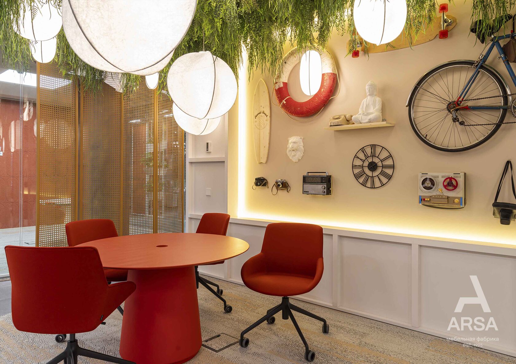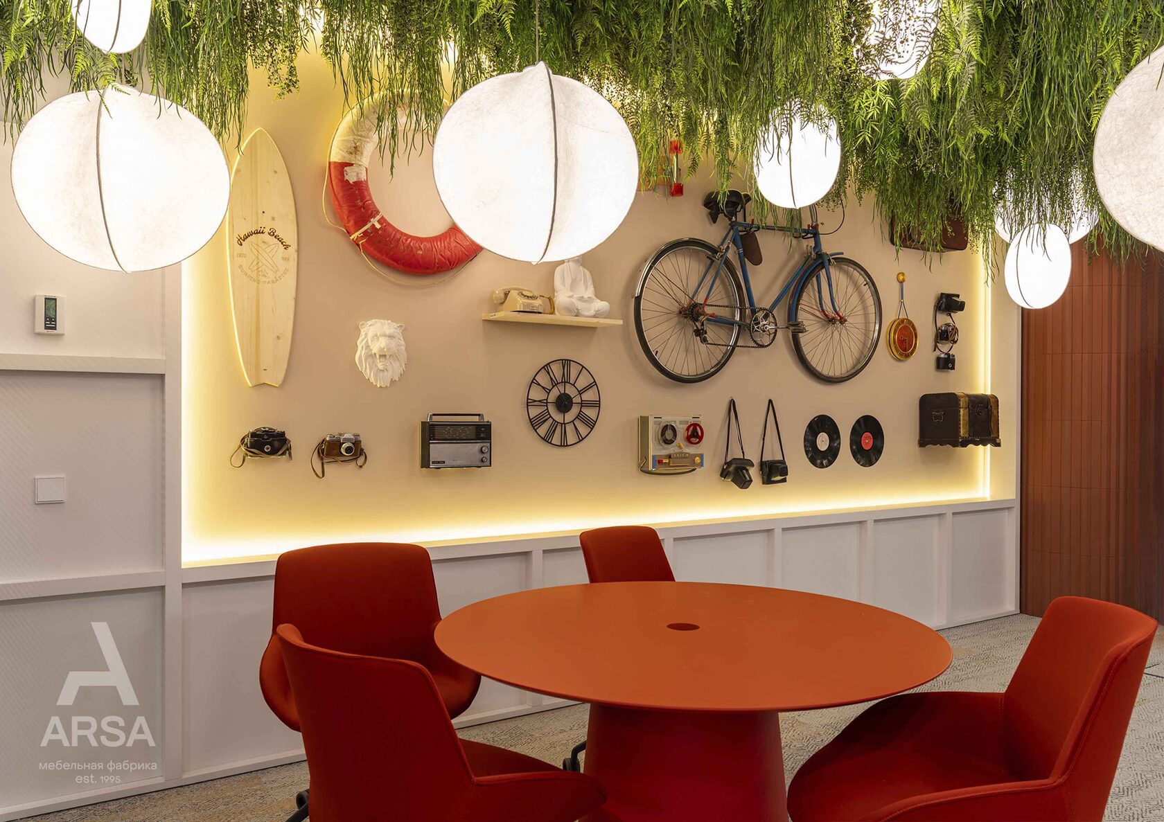 Инсталляции в зонах неформального общения собраны из ретро предметов различных эпох, выкрашенных краской.